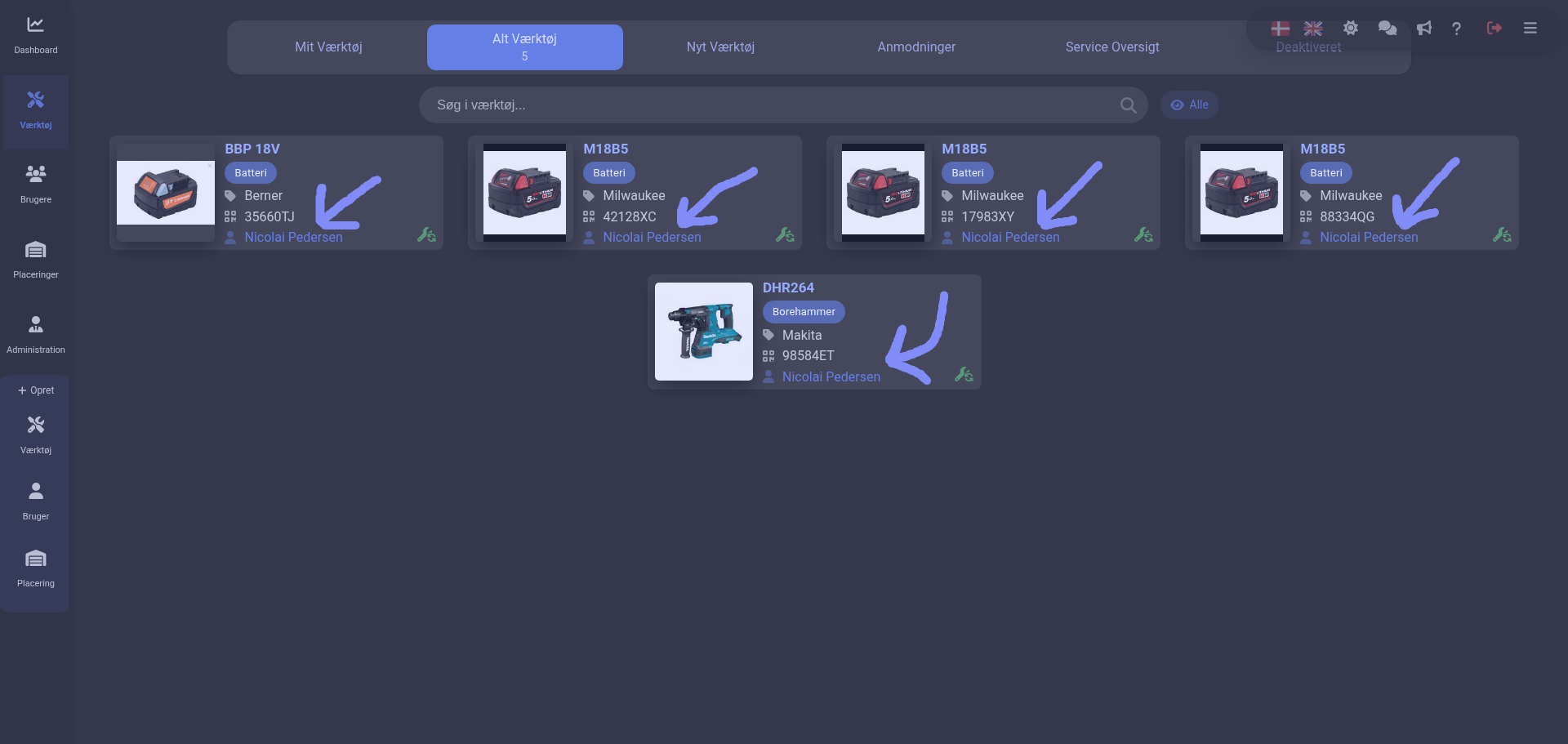 Jeg kan godt bruge, at jeg kan se placering på værktøjet. så en linje over mit navn med placering, så der kommer til at stå hvilket bil værktøjet er placeret i.